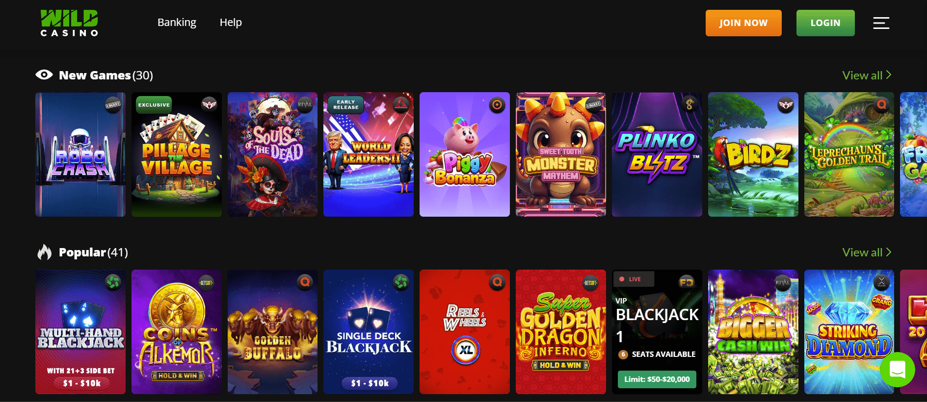 New players will discover that Wild Casino has a distinctive concept and a wide variety of gaming alternatives, such as table games and online slots.