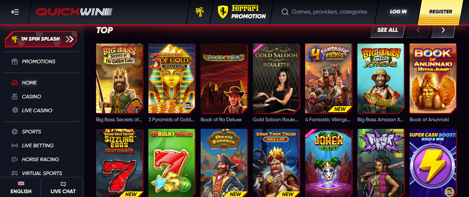 QuickWin is a new online gambling platform created by Rabidi NV, a gaming company already well-known among seasoned gamers. Despite being relatively new, the firm has created a number of casinos with excellent entertainment options. In addition to a sizable sportsbook area where you may bet on your preferred teams in more than 30 sports, their websites are typically packed with thrilling games from the most reputable providers that guarantee the greatest quality. Additionally, you can be certain that the Promotions section is full of alluring offers and deals with high winning potential so you can easily increase your balance in order to fully enjoy this wide range of betting chances.